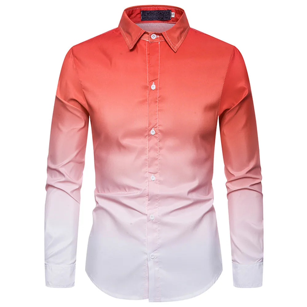 Весна-осень, мужские повседневные рубашки с длинным рукавом, градиентные цветные блузки для мужчин, приталенная рубашка, новая мода, деловые рубашки для мужчин