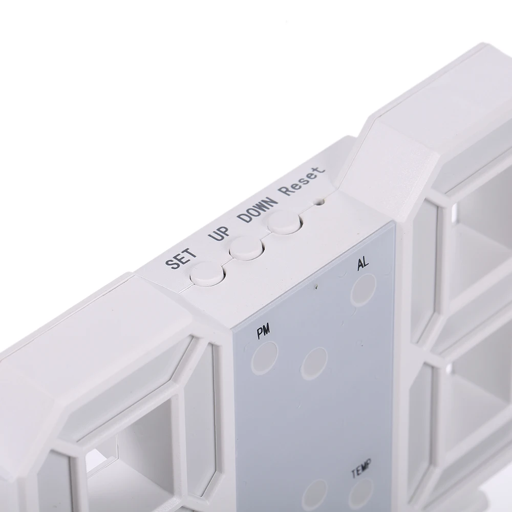 Простой и компактный дизайн с новой формой, хорошо подходит для любых современных, промышленных или современных условий. Вы можете использовать его в качестве портативного цифрового настольного будильника или настенных часов для украшения вашего дома.