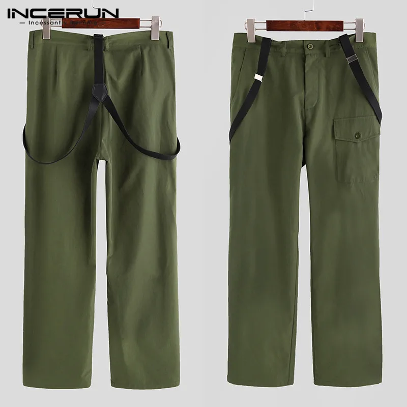 Описание товара: мужские однотонные повседневные универсальные брюки на бретелях.