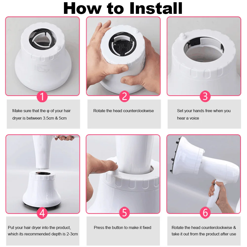 Универсальное отверстие для насадка для сушки волос регулируется, подходит для большинства фена, диаметр сопла которых составляет 1,57-2,76 дюйма.