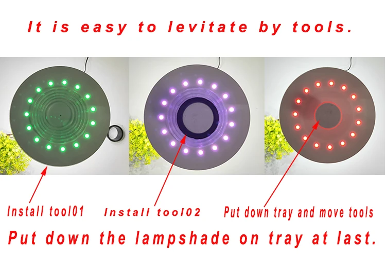 Магнитный поднос внутри абажура можно вынуть, чтобы левитировать отдельно,