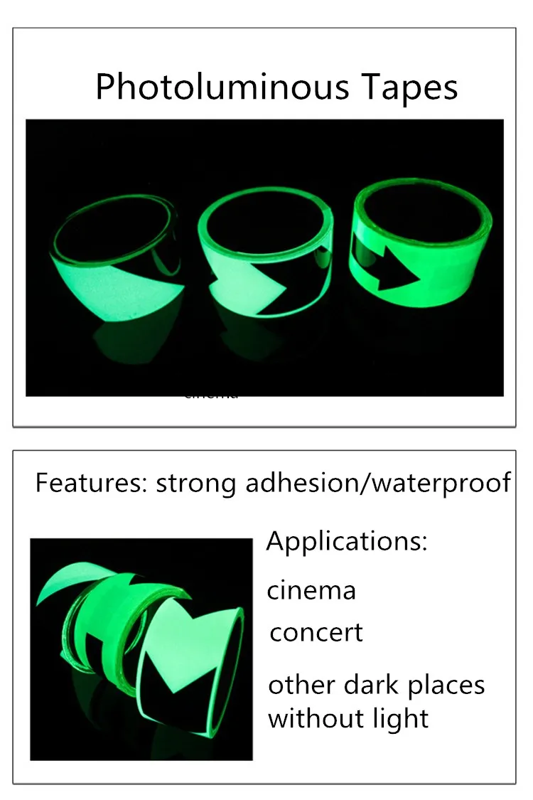 Material: PET Size: 5 cm x 1 m /5 cm x 5 m Application: Stairs/Cinema/Advertisement/KTV/Firefighting/Dailylife Package: 1 roll* sticker Tips: You should expose the tapes with strong light for about 10 minutes and check the luminous effect in the dark;