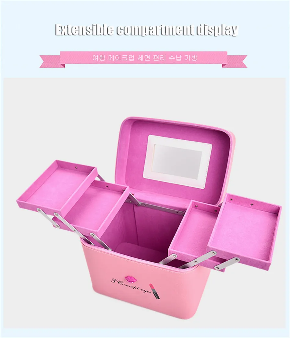2. много места для хранения: Эта сумка для макияжа имеет достаточно места для хранения вашего макияжа и косметических аксессуаров, таких как помада, блеск для губ, духи, кисти для макияжа, тени для век, палитры для макияжа, кисти для волос, средства для ухода за кожей, лак для ногтей, инструменты для дизайна ногтей, шампунь, ювелирные изделия, электронные аксессуары, камера, эфирное масло, туалетные принадлежности, Бритвенный набор, ценный предмет и поэтому нет.