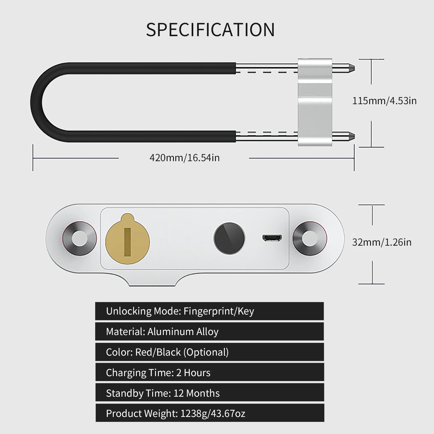 - Safe and Reliable: Made of solid 13mm stainless steel, the lock shackle of this U-shaped fingerprint lock can resist 16 tons of hydraulic shearing pressure and prevent the damage brought from hacksaw or electric drill, which provides high accuracy, safety and reliability.
