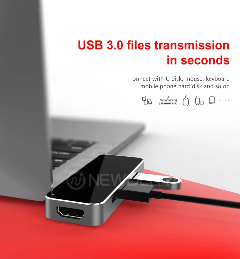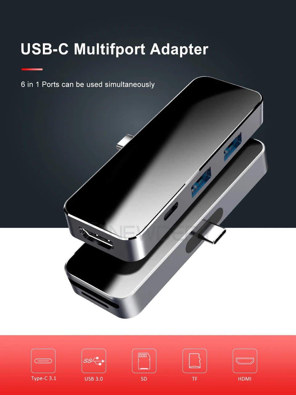 Newdery 6-в1 USB C концентратор Поддержка USB PD 3,0 с 4K/ 30Hz HDMI, 2xUSB 3,0 порта, SD/TF кардридер для MacBook Pro type c устройства