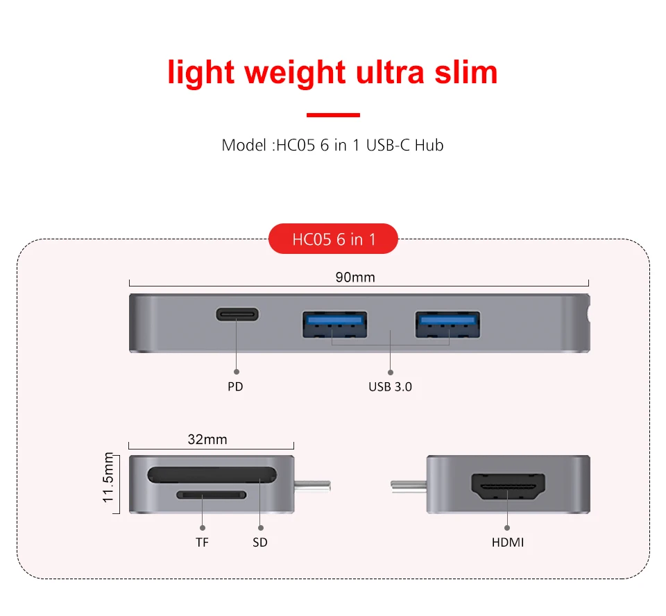 Этот концентратор 6 в 1 предназначен для MacBook Pro, MacBook и других продуктов со стандартным интерфейсом Type-C; Этот продукт может быть расширен с 2 интерфейсами USB3.0, 1 HDMI, 1 SD, 1 MicroSD, 1 Type-C женский интерфейс (поддерживает функцию зарядки PD3.0). Технические характеристики: 1. Интерфейс: порт Type-C * 1, Порт USB3.0 * 2, HDMI * 1, SD * 1, MicroSD * 1, Type-C female * 1; 2, Type-C: Поддержка USB3.1 Gen2 10 ГБ, Plug & Play; 3, концентратор USB 3,0: Поддержка USB 3,1 5 Гбит/с, Совместимость с USB2.0/1,1, Plug & Play; 4, светодиодный дисплей, SD / MicroSD: Поддержка SD / SDHC / SDXC, SD3.0 UHS-1, до 104 МБ/с., Ёмкость до 2 ТБ; 5, HDMI: разрешение до 4K / 30Hz, поддержка HDCP1.4/2,2; 6, гнездо типа C: Поддержка USB PD 3,0, вход 5 В/9 В/12 В/15 В/20V_3A; Поддержка оригинального зарядного устройства Apple 5,2 В/2.4A, 14,5 в/2A, 20,3 в/3A, мощность зарядки до 60 Вт для ноутбука 7. Поддержка выхода USB интерфейса: USB3.0 поддерживает выход до 900mA, USB2.0 поддерживает выход до 500mA, в соответствии со стандартным протоколом USB; 8. Энергопотребление в режиме ожидания: 5 В/200 мА; 9. Поддерживаемые устройства: Для MacBook 2018, для Macbook Pro 2016/2017/2018 (13 и 15 дюймов), для Chromebook, для Samsung Galaxy Tab Pro S, HP Spectre, для Huawei Matebook и т. д. Поддержка стандартного интерфейса Type-C и PD3. 0 протокол зарядки ноутбука; 10. Поддержка системы: Windows7/8/10, Google Chrome OS, Mac OS X Yosemite, Mac OS X El Capitan, Mac OS sierra, Android или выше; 11, Индикатор питания: зеленый светодиодный 12, размер изделия: 32*90*12 мм 13, вес изделия: 40 г