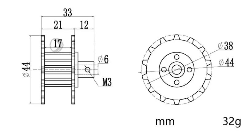 Монтажные отверстия приводного колеса доступны в 3 мм, 4 мм, 5 мм и 6 мм вариантах.