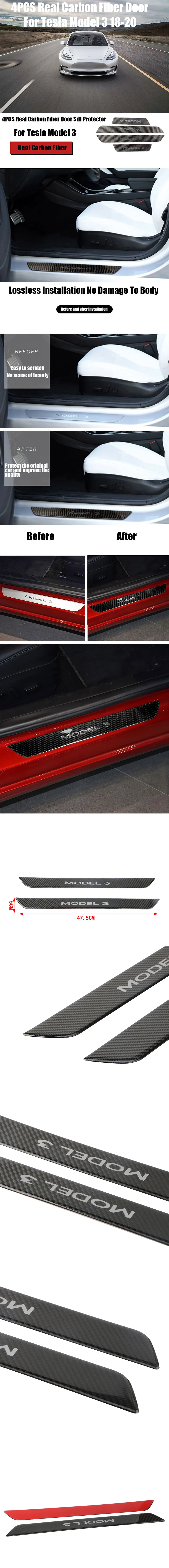 4 шт. углеродное волокно автомобиля порога потертости Добро пожаловать педаль протектор для Tesla модель 3 2018-2020
