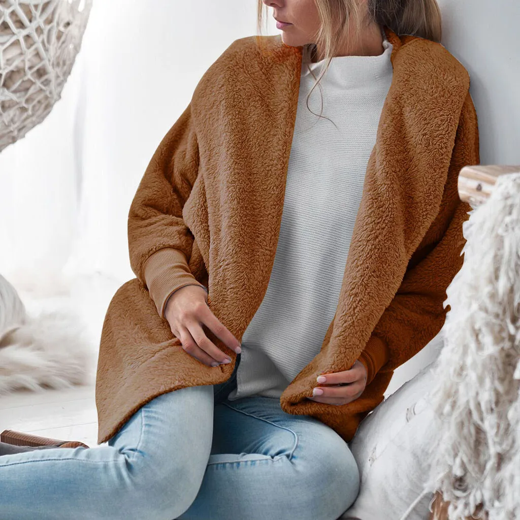 Женское пушистое плюшевое пальто с капюшоном, осенне-зимняя куртка, кардиган, верхняя одежда, джемпер размера плюс 2020