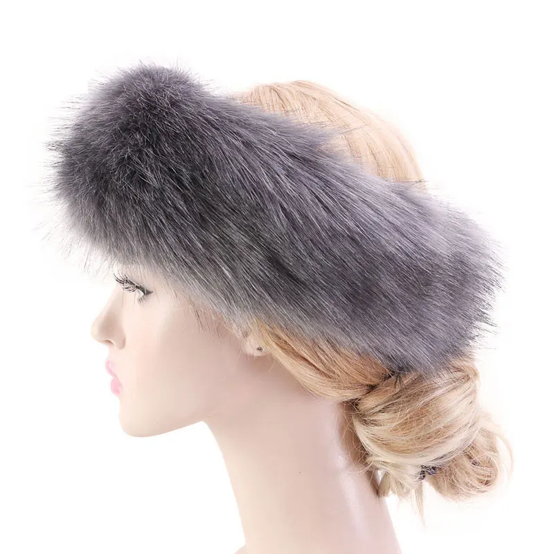 Зимняя Теплая повязка на голову из искусственного лисьего меха, мягкая пушистая повязка на уши