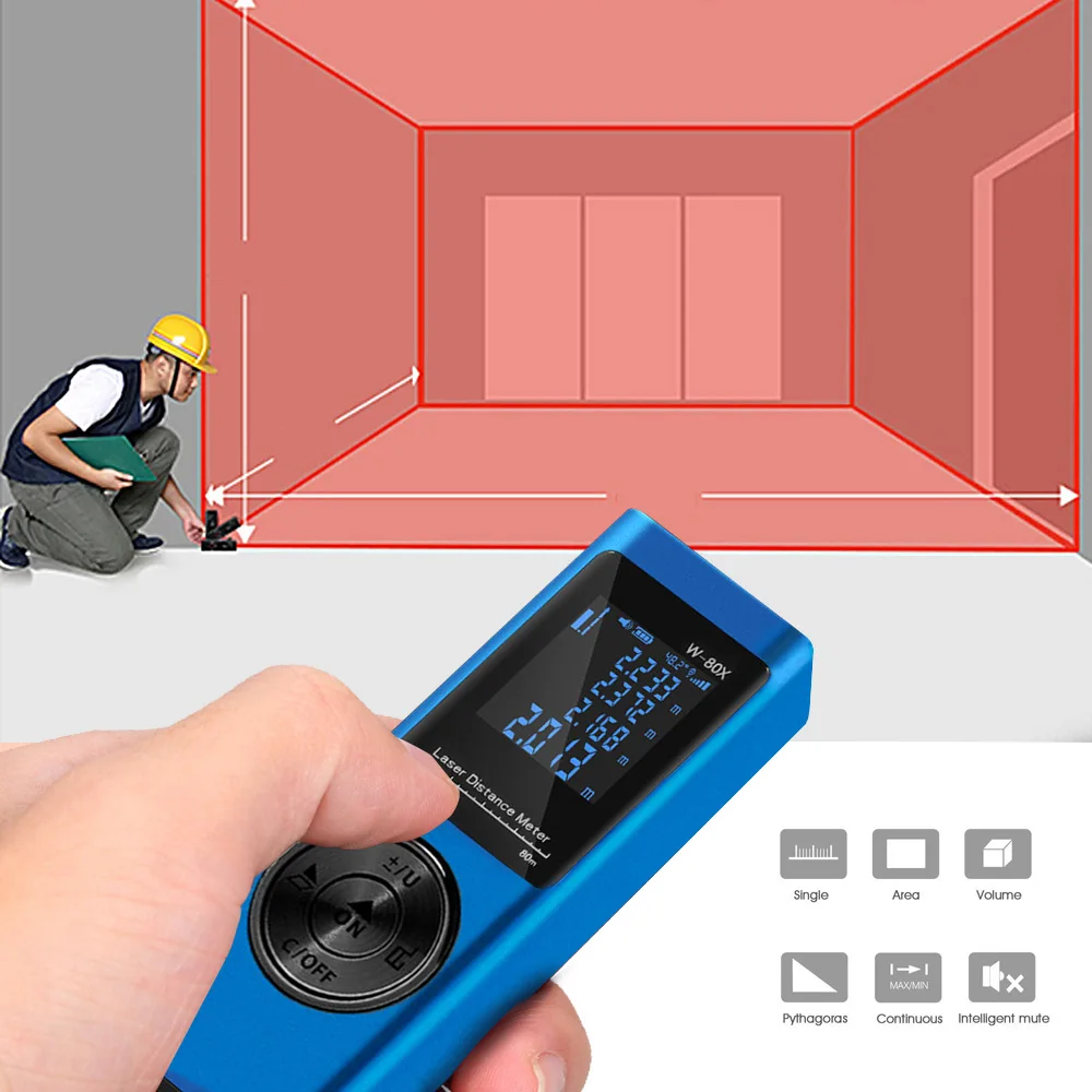 Портативный дальномер с компактным размером, в качестве замены традиционных измерительных инструментов (ленты и стальные весы) может быть широко использован в строительстве и промышленности, особенно в больших областях, таких как комнаты, квартиры, здания, риэлт, заводы, склады и т. Д.