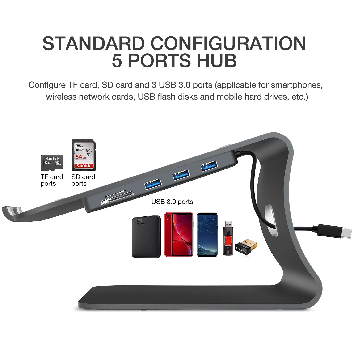 Алюминиевая Подставка для ноутбука, с USB 3,0 концентратором и SD-кард-ридером, Настольная эргономичная охлаждающая подставка для ноутбука MacBook Air Pro