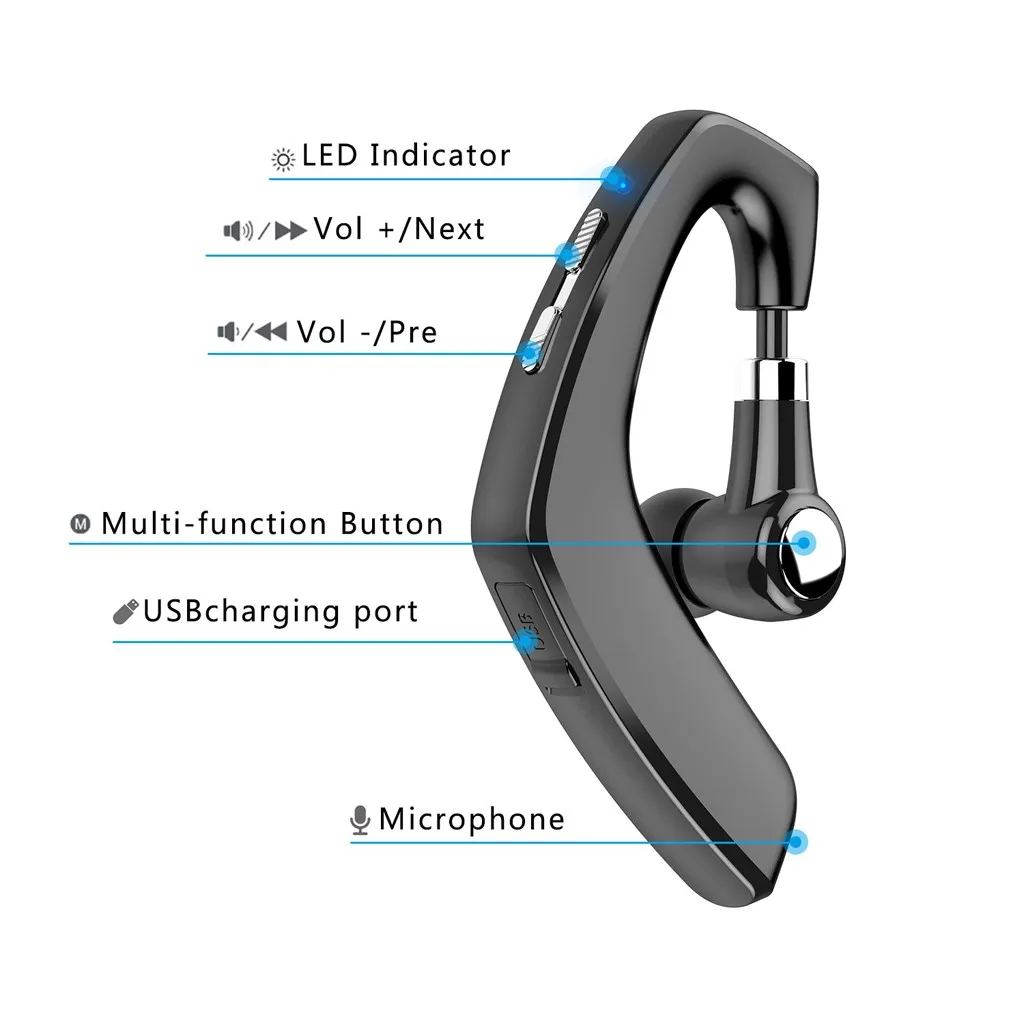 100% новый товар высокого качества. Совместим со всеми устройствами с поддержкой bluetooth, такими как смартфоны, iPad и т. д. Эргономичный дизайн для надежного, но комфортного ношения, идеально подходит для обоих ушей. Встроенный HD микрофон с шумоподавлением CVC6.0, обеспечивает Hi-Fi стерео звук музыки и сильный сигнал. С мягким наконечником уха и крючком, минимизирует дискомфорт при длительном использовании. Поворот на 180 градусов позволяет регулировать угол и помещать эту гарнитуру в правое или левое ухо, обеспечивая удобство для пользователей. Водонепроницаемость PX6, выдерживает потные тренировки и переживает случайные падения в воду. Встроенная литий-ионная полимерная аккумуляторная батарея, поддерживает до 10 ~ 12 часов прослушивания и разговора, 240 часов в режиме ожидания. Можно подключить к 2 bluetooth-устройствам одновременно. Легко сопрягать, отвечать/отклонять вызов, управлять громкостью, запускать/останавливать музыку.Спецификация