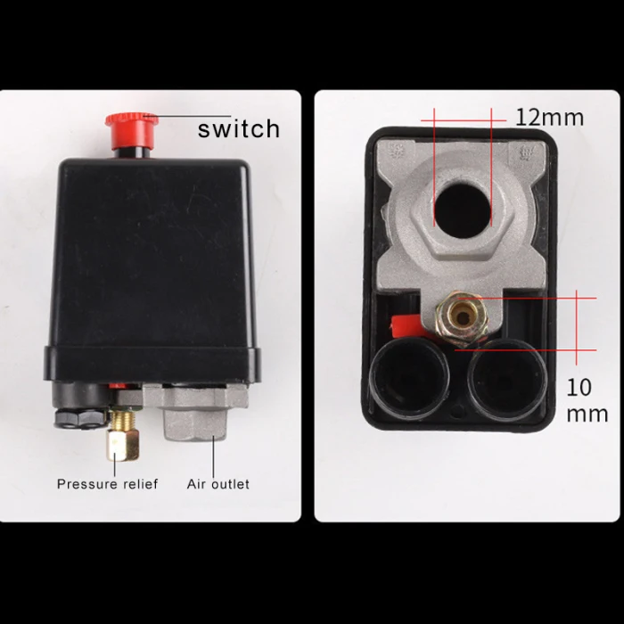 (Давление ниже 90 PSI, включите компрессор. Давление более 120 фунтов на квадратный дюйм, выключите компрессор. Не регулируется.)