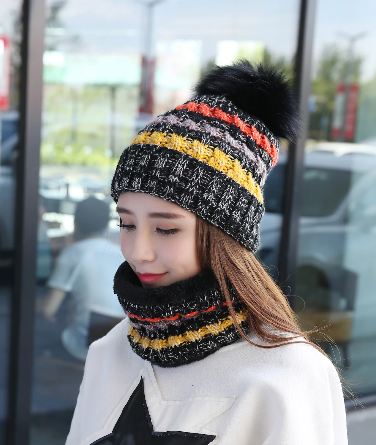 Акриловая вязаная и флисовая подкладка, женская зимняя шапка и шарф, набор Плотный и теплый вязаный комплект с плюшевым шарфом и шапкой, модный уникальный дизайн сохраняет тепло и выглядит хорошо в холодную погоду Многофункциональная шапка и шарф в комплекте, обеспечивают дополнительную тепло на ваших ушах и шее, вы можете использовать его отдельно или вместе, как вы хотите Оставайтесь в тепле все время, отлично подходит для зимнего отдыха на свежем воздухе и ежедневного подогрева. Эластичная шапочка подходит для девушек и женщин, обхват головы среднего и большого размера. Круглый шарф защищает от солнца и защищает от боли в шее от ледяных ветров