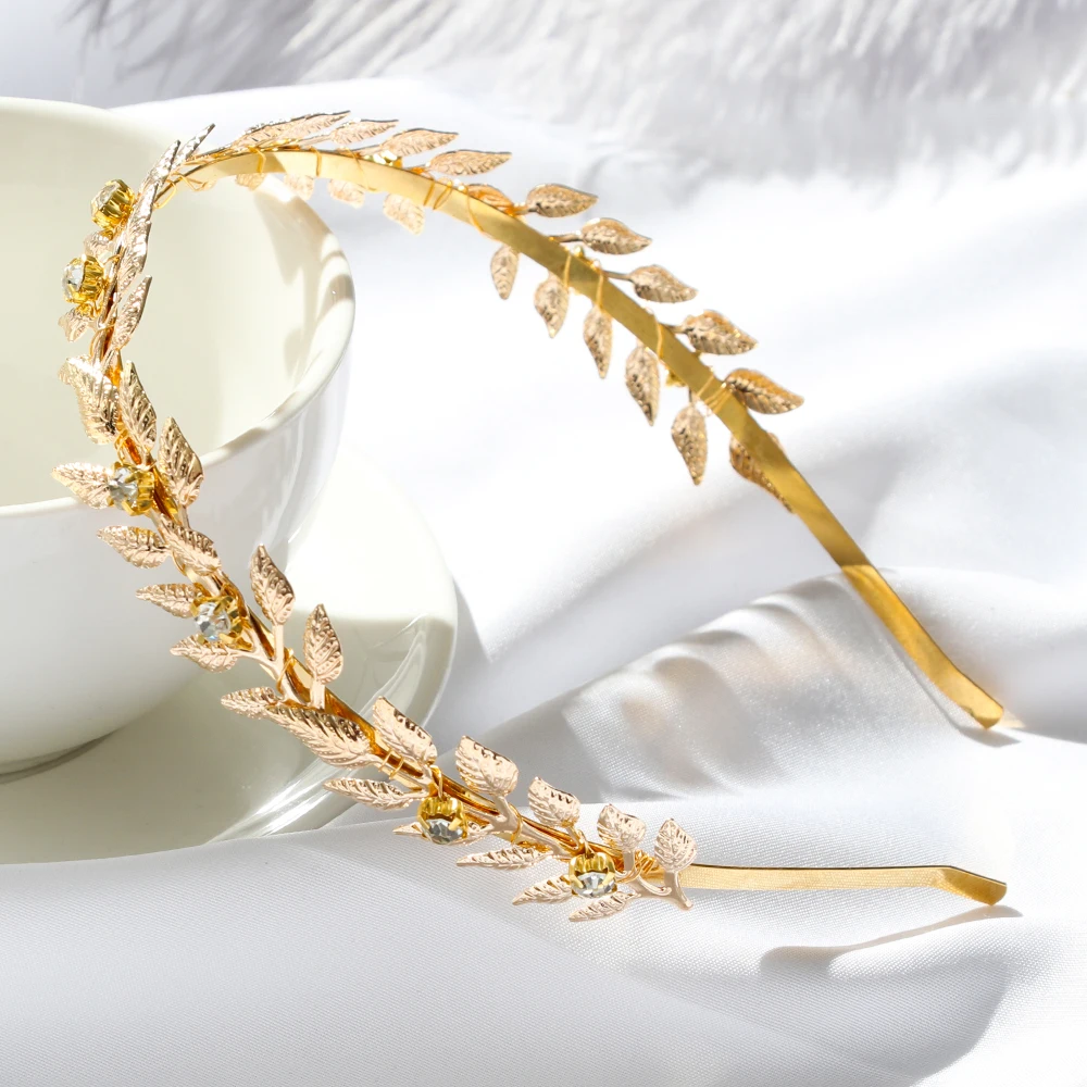 1 шт. золотистые металлические резинки для волос в форме листьев, корона для волос, винтажный венок с жемчужинами, свадебная тиара, свадебный аксессуар для волос