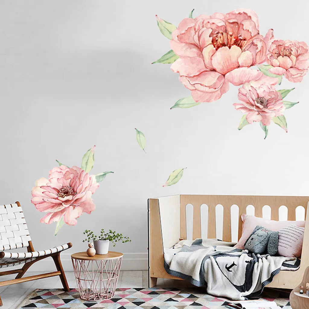 Пион розы цветы стикер на стену искусство Наклейки для детской комнаты, домашний декор, подарок