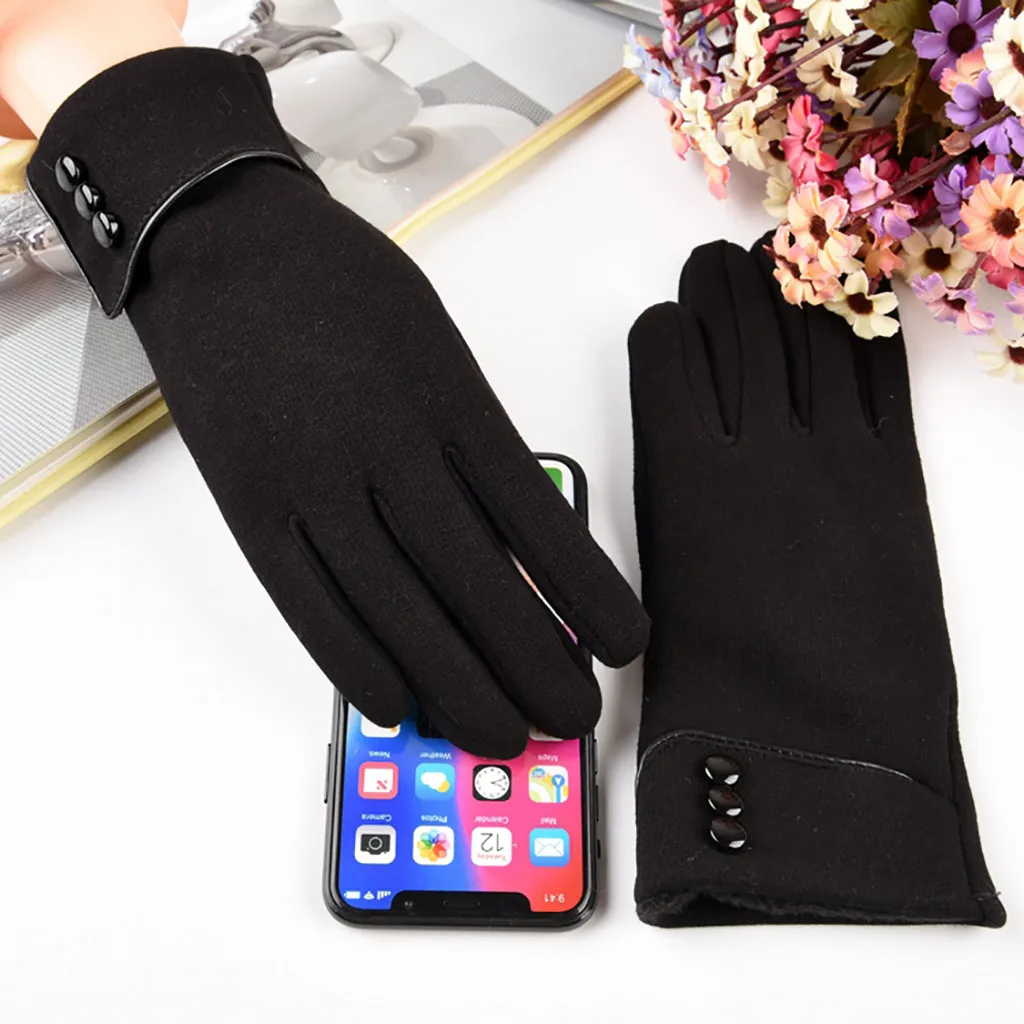Модные женские теплые зимние перчатки с манжетами и мягкой подкладкой, украшенные пуговицами