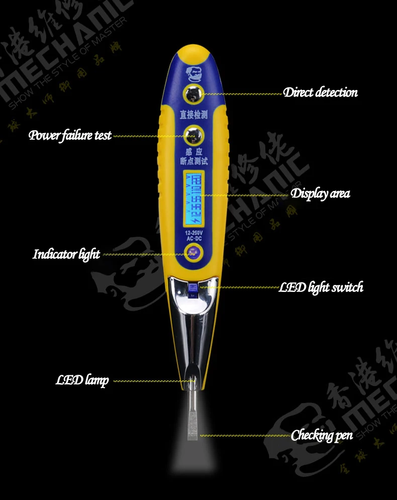 Механический цифровой дисплей, светодиодный индукционный тестовый карандаш 12-250 В переменного тока, постоянного тока, линия обнаружения останова, Электрический бытовой электроскоп