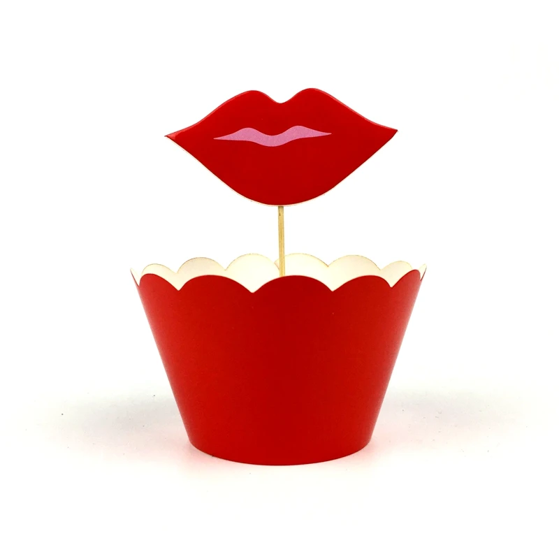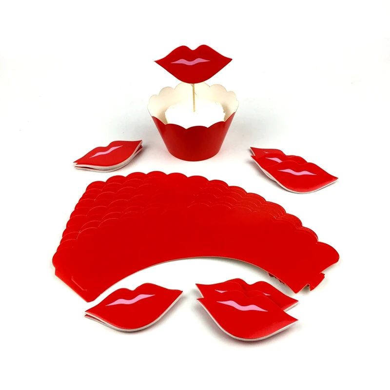 24 шт./лот бумажные обертки для кексов с красными губами для детей, вечерние украшения на день рождения, свадебные чашки для торта, украшения