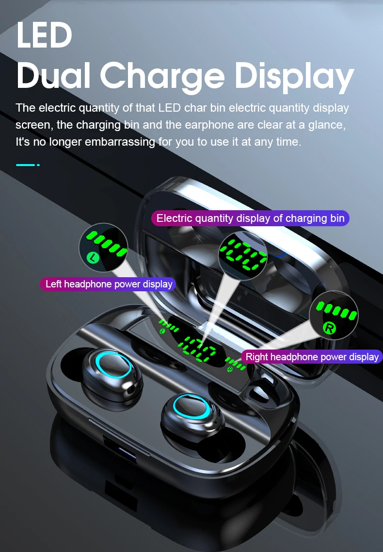 Bluetooth 5,0 беспроводные наушники TWS Bluetooth наушники светодиодный 2200 мАч Внешний аккумулятор спортивные водонепроницаемые наушники-гарнитуры