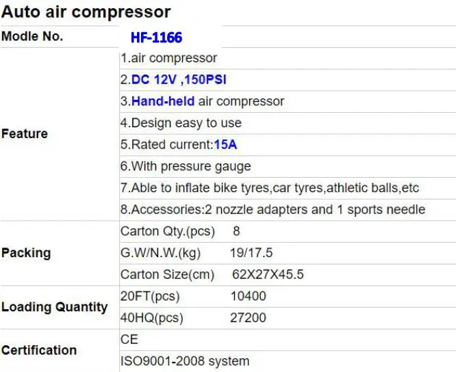 1. Шнур питания прикуривателя 3 м (Длина шнура питания может быть настроена)