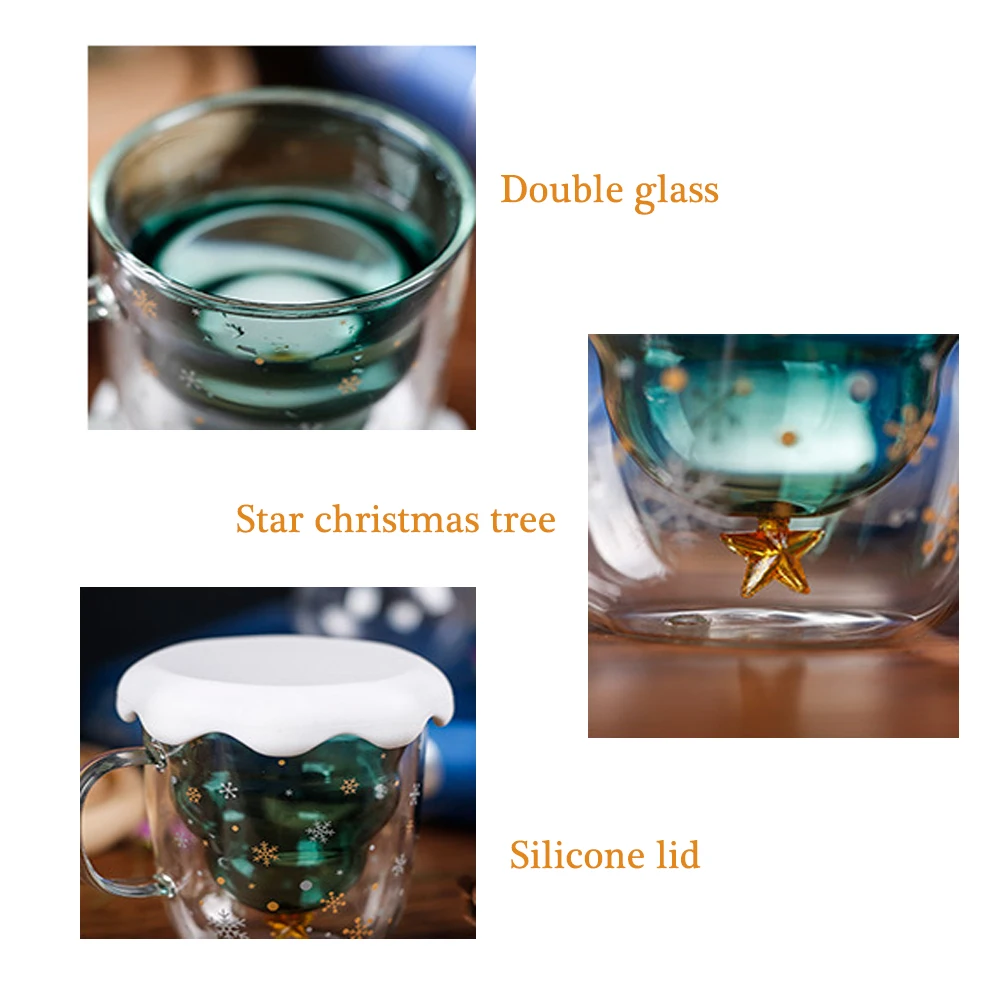 Рождественская елка: Наслаждайтесь новейшей рождественской елкой со звездой и желанием двойной стеклянной кофейной кружкой, милой крышкой снежной формы, предназначенной для защиты от пыли. Поддерживает идеальные температуры дольше, так что вы можете глотать без беспокойства и без подзарядки.