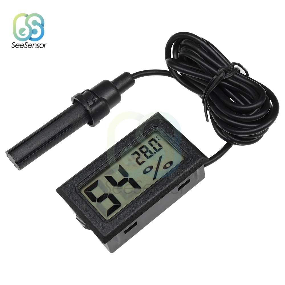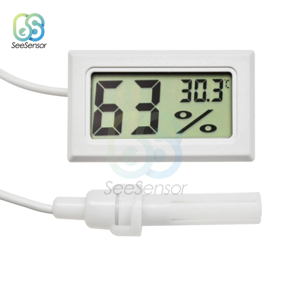 Описание: Диапазон температур: -50 ° c ~ 70 ° c Диапазон измерения влажности: 10% RH ~ 99% RH Точность влажности: 5% Разрешение дисплея влажности: 1% RH Точность температуры: 1 градус Цельсия Операционной Напряжение: 1,5 V или LR44 батареи (не входит в комплект) Период выборки: 10S Размер: прибл. 48x28,5x15,2 мм Размер ЖК-дисплея: прибл. 40x22,5 мм Размеры установки: прибл. 46x27x13,5 мм Цвет: черный/белый Этот гигрометр имеет зонд, который может точно проверить влажность в некоторых местах. Он широко используется Посылка включает в себя: 1 х мини ЖК-цифровой термометр гигрометр Измеритель температуры и влажности инструменты холодильник, аквариум измерительный прибор
