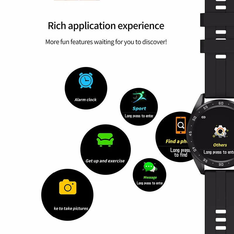 * Особенности: мульти-спортивный режим, сердечный ритм/кровяное давление контроля давления, телефон, о вызовах и сообщениях, мониторинга сна, функция «найти телефон», будильник, дистанционный пульт фото, функция напоминания о необходимости двигательной активности, секундомер, оксиметр, мониторинг, регулировка яркости, прямое обновление OTA, индивидуальный циферблат * Экран: 1,3 дюймов IPS true color Экран * Водонепроницаемость: IP67 * Bluetooth: Bluetooth 4,0 * Метод зарядки: Тип контакта * Емкость аккумулятора: 170 мАч * Мониторинг сердечного ритма: ручное/автоматическое обнаружение * Время работы в режиме ожидания: 15 дней * Аксессуары: умный браслет, браслет, руководство, зажим для зарядки