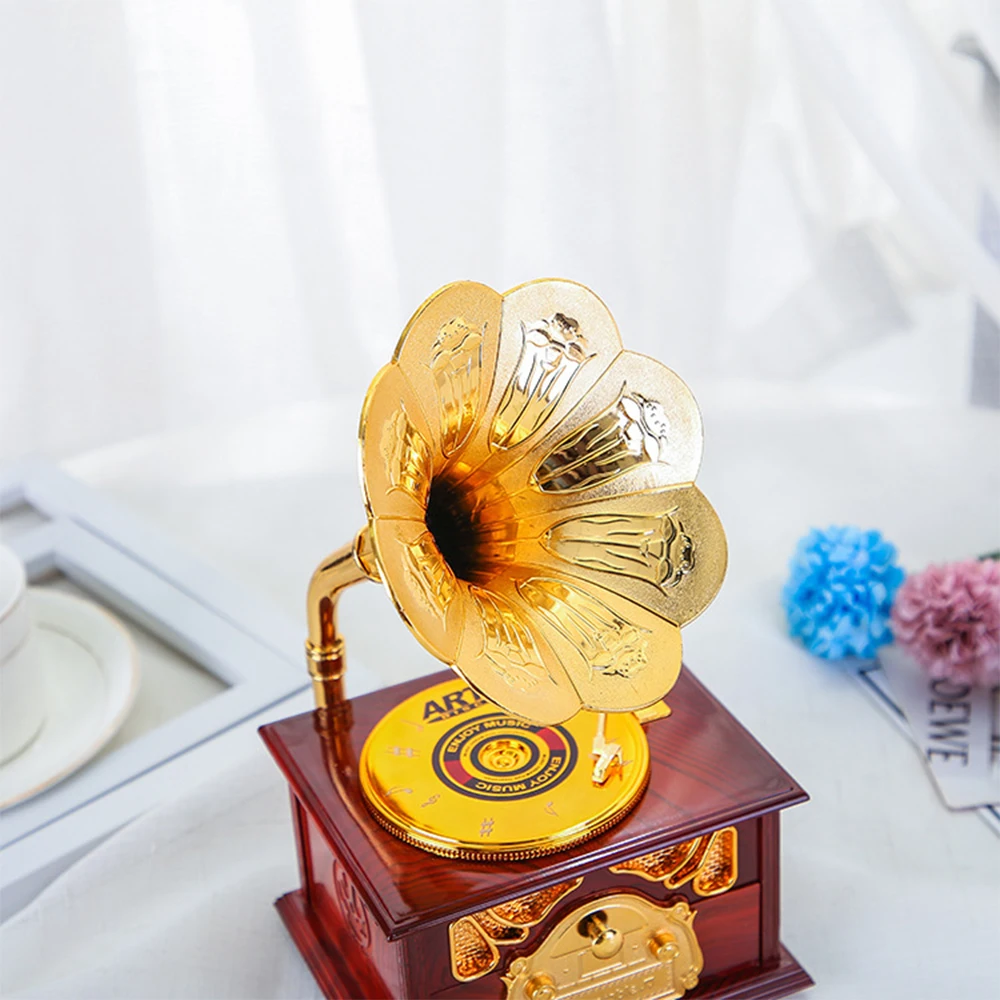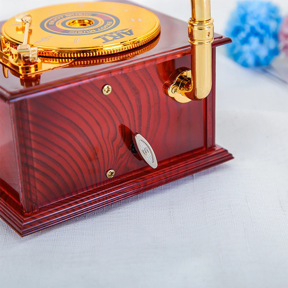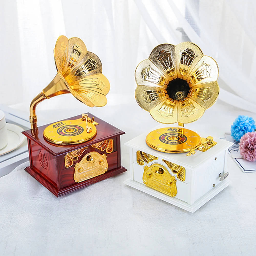 Музыкальная шкатулка в античном стиле, деревянная музыкальная шкатулка для пианино, модель проектора, фонограф с рукояткой, музыкальные коробки, праздничный подарок на день рождения для детей