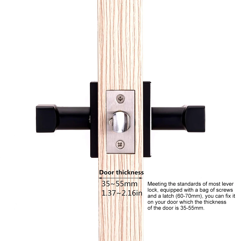 Meeting the standards of most lever lock, equipped with a bag of screws and a latch (60-70mm), you can fix it on your door which the thickness of the door is 35-55mm.