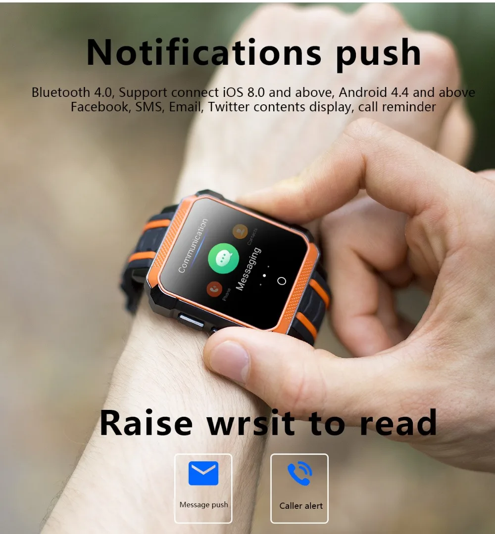 Прочный дизайне, бесстрашный никогда не: сплав чехол отделки, Высокопрочное закаленное Высокопрочное минеральное стекло зеркало, IP68 из водонепроницаемого материала, независимо от того, в дождь, не вредит мытье рук и плавание в бассейне, носите его, предупреждение о повышенной температуре: душ с горячей водой, пожалуйста, не носите его Высокопроизводительная аппаратная производительность ever: процессор mediatek MT6737, четырехъядерный процессор, 1 ГБ ОЗУ, 8 Гб ПЗУ, загрузка нескольких приложений доступна, наслаждайтесь convenice на запястье Дизайн с низким энергопотреблением, емкость аккумулятора 600 мА · ч: Встроенный многосуставный сенсор-концентратор, поддержка ЦП, Контроль Пульса, мониторинг сна, улучшенный Срок службы батареи Retina display экран, наслаждайтесь визуальным: дисплей retina dispay размером 1,54 дюйма, разрешение до 320x320 пикселей, великолепные цвета и детали, независимо от того, является ли это повседневной игрой или видео, это обеспечивает первоклассный захватывающий визуальный опыт Поддержка SIM-карты обеспечивает высокое качество звука для обоих концов: Поддержка GSM звонков, сотовой связи WCDMA/LTE, размера Nano SIM, без сотовой связи CDMA или звонков