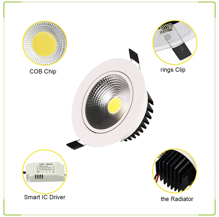 Светодиодный светильник 5 Вт 7 Вт 10 Вт 15 Вт 20 Вт 24 Вт 85-265 в COB светодиодный светильник s COB точечный встраиваемый светильник лампа