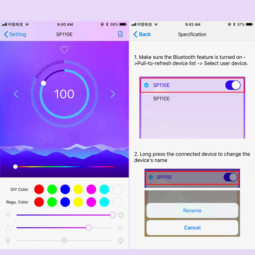 1. Управление через приложение через Bluetooth 4,0, дальнее расстояние управления, удобное в использовании;