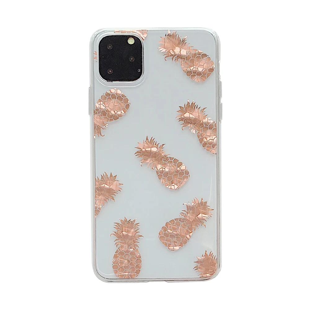 KISSCASE Блестящий Прозрачный чехол для iPhone 11 Pro XS Max XR X 8 7 Plus, прозрачная задняя крышка с золотым листом и ананасом, Fundas Coque