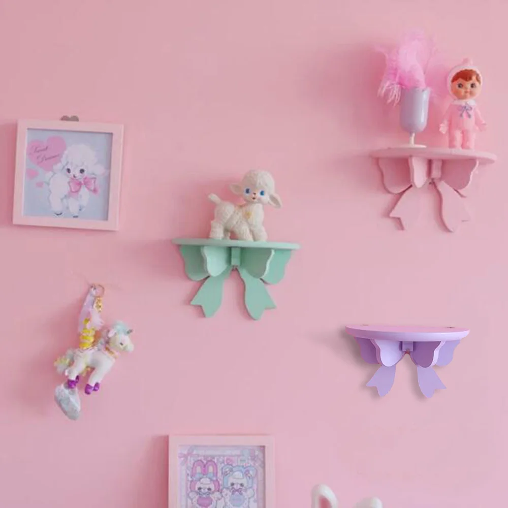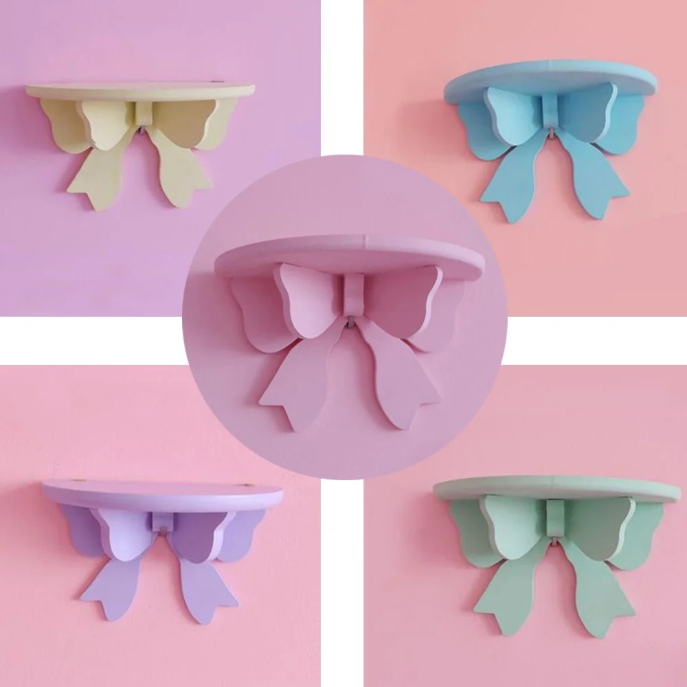 Декоративная деревянная настенная полка ручной работы, подвесная полка в форме банта, держатель для хранения, органайзер, аксессуары для украшения дома