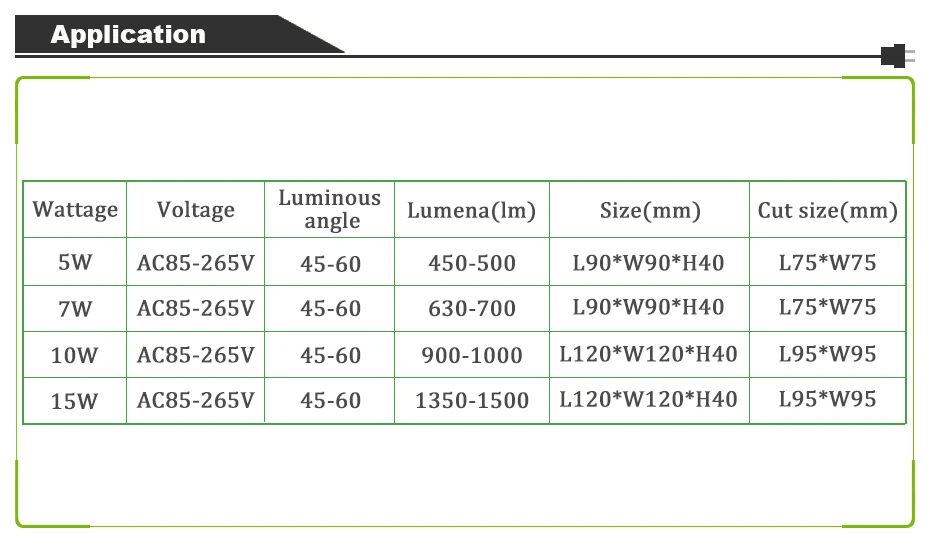 Особенности: Модель: 5 Вт; 7 Вт; 10 Вт/15 Вт потолочный светильник Светодиодный чип: EPISTAR (Лучший светодиодный чип на рынке) Цвет: теплый белый (2800-3500 K); Холодный белый (5500-6500 K) Вход Напряжение: AC85-265V Интенсивность света: 90-100 лм/Вт Угол луча: 60 градусов Светодиодный индикатор рабочей температуры:-25 °C-+ 65 °C Вес: от 400 г-500 г (светильник + Драйвер) Длительный срок службы достигает 100 000 часов Отлично светоотдача Одобрено: CE/RoHS