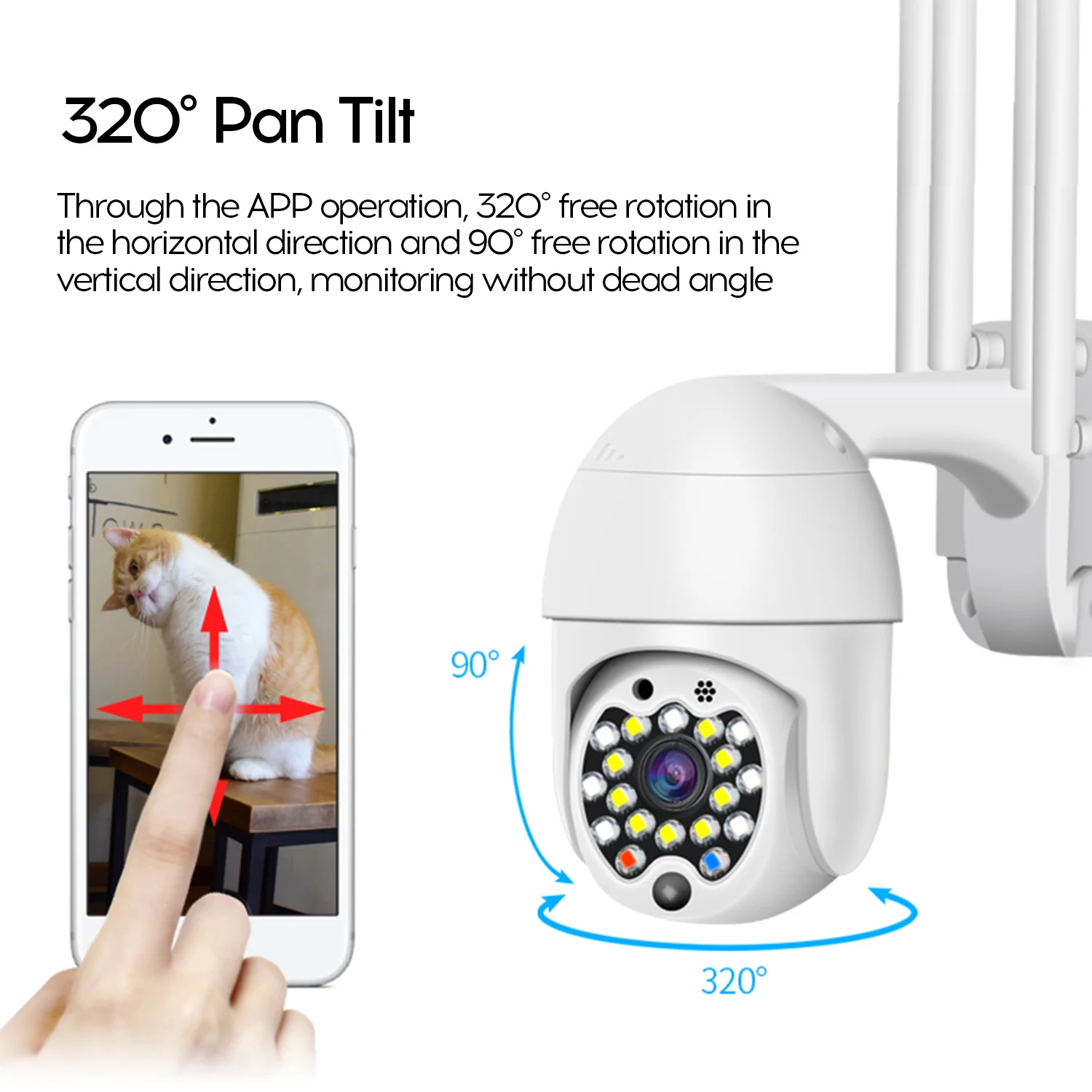 320 ° по горизонтали и 90 ° по вертикали, это Wi-Fi ip-камера без слепых пятен, держит глаз на каждом углу в области мониторинга.