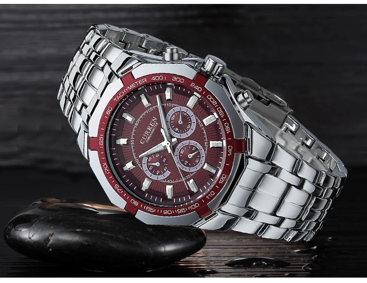 Бренд: Curren Стиль: модные и повседневные часы Дисплей аналоговый Дисплей -Высококачественный кварцевый механизм; -Стекло с высокой стойкостью к истиранию; -30 метров Водонепроницаемость. (Пожалуйста, не нажимайте кнопки под водой) Пожалуйста, обратите внимание 1/часы водонепроницаемые 3 бар можно мыть вручную без горячей/теплой воды, пожалуйста, не заливайте воду на часы, не можете принимать душ, ванну, плавать и т. Д. 2/3 небольших циферблата и боковые кнопки просто декоративные, без функций. Это очень важно.