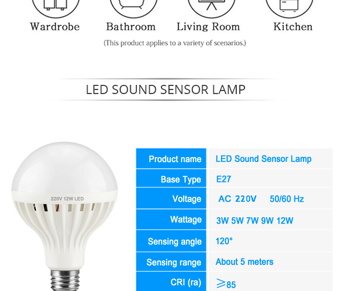 E27 звук Управление светодиодный лампы параметры