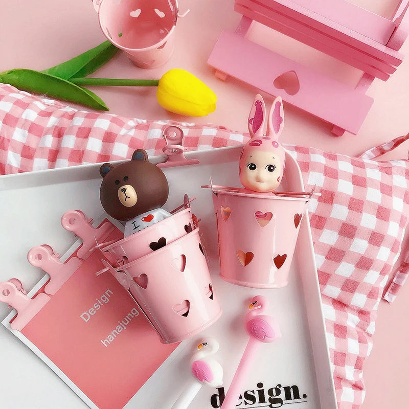 Ведро для хранения в форме розового ведра хорошо подходит для украшения и хранения.