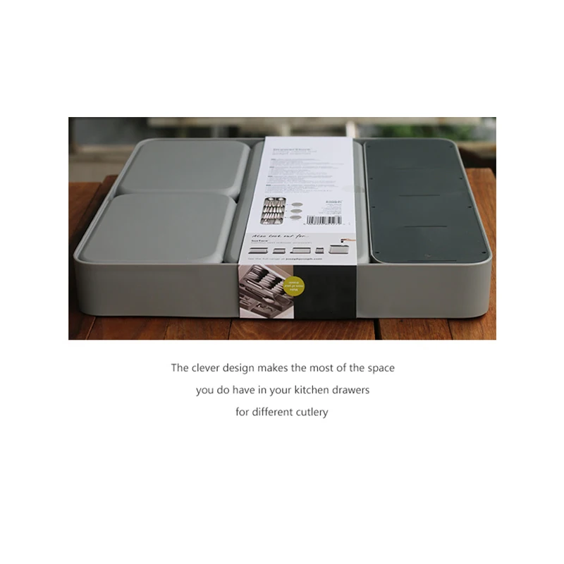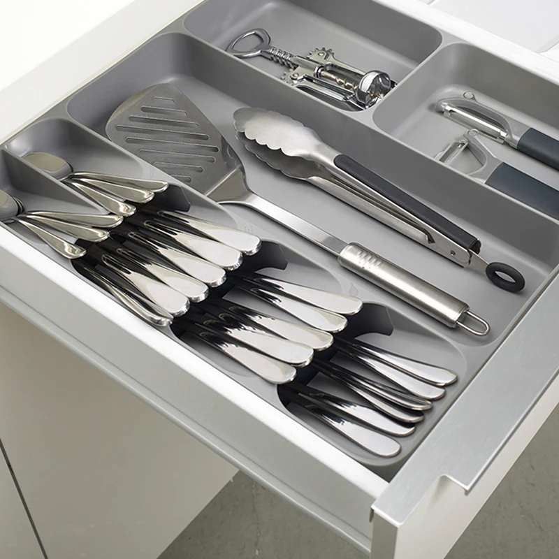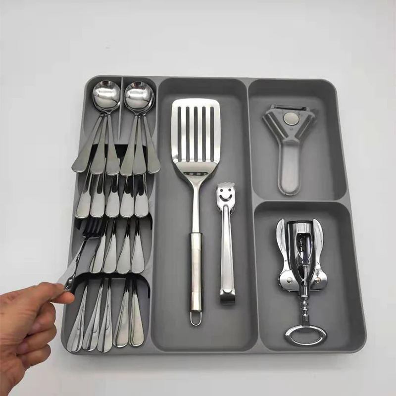 Органайзер для столовых приборов может удерживать лопатку и кухонную утварь, а также может использоваться для сортировки и хранения столовых приборов и другой утвари для полноценного использования пространства ящика.