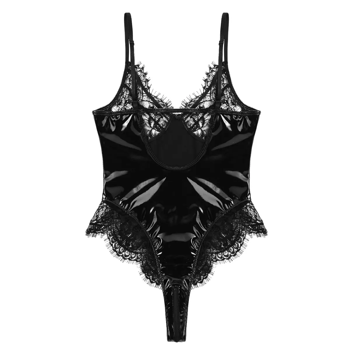Женский модный Цельный боди из лакированной кожи, нижнее белье, мокрый внешний вид.