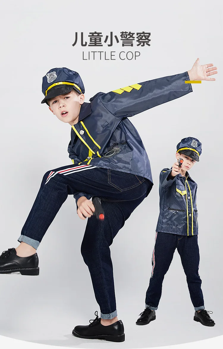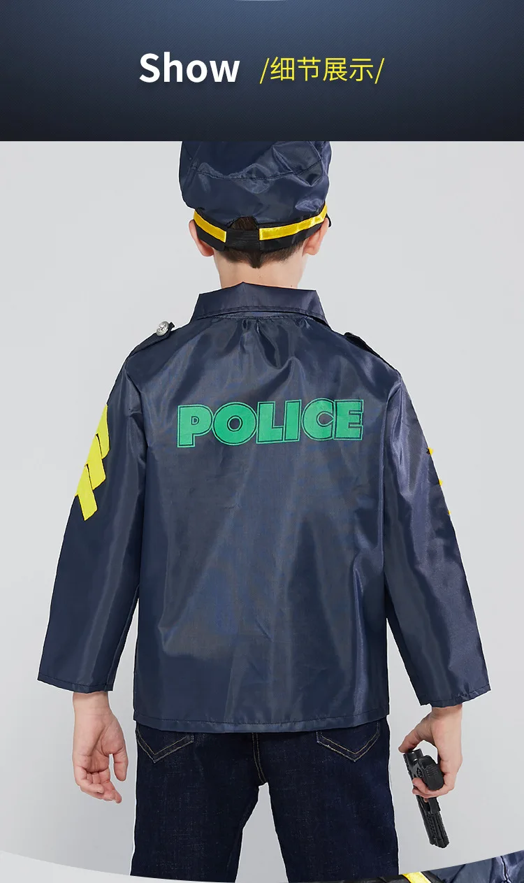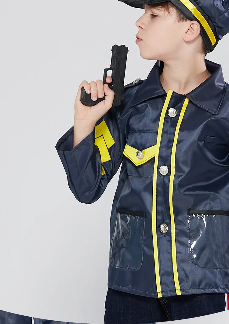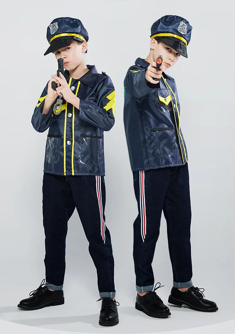Синяя полицейская Униформа; Карнавальный костюм для мальчиков на Хеллоуин; Детский костюм для маленьких полицейских; Костюм для ролевых игр; Карнавальная вечеринка; Нарядное платье