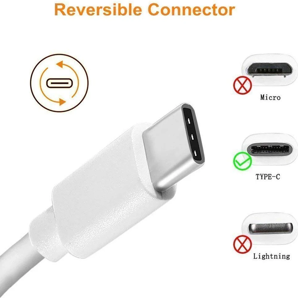 - Color: White - Length: 1m - Current: 2A (Max) - Resistors: 56KΩ pull-up resistors - Connector: 2A seamless end tip usb c connector