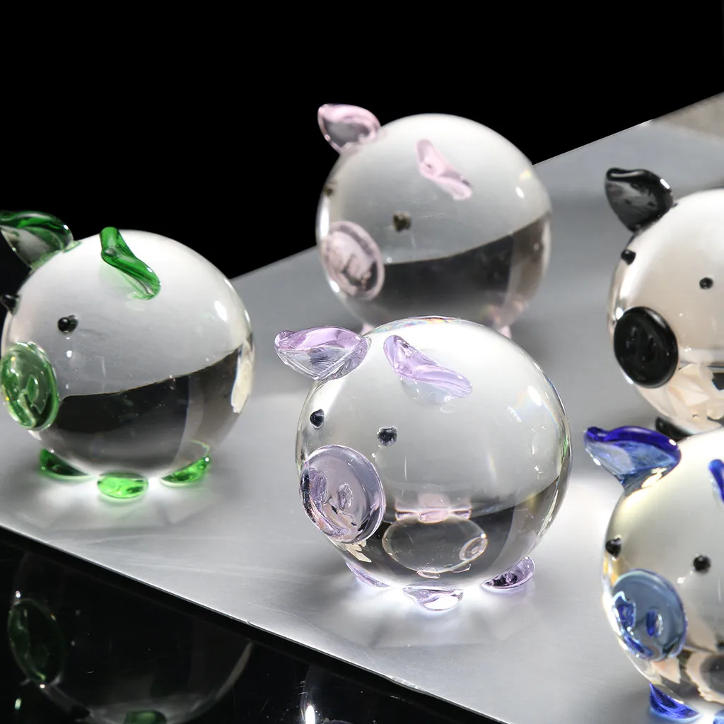 Многоцветная фигурка Свинки из кристаллов, Мини Коллекционная статуя животного, семейное украшение