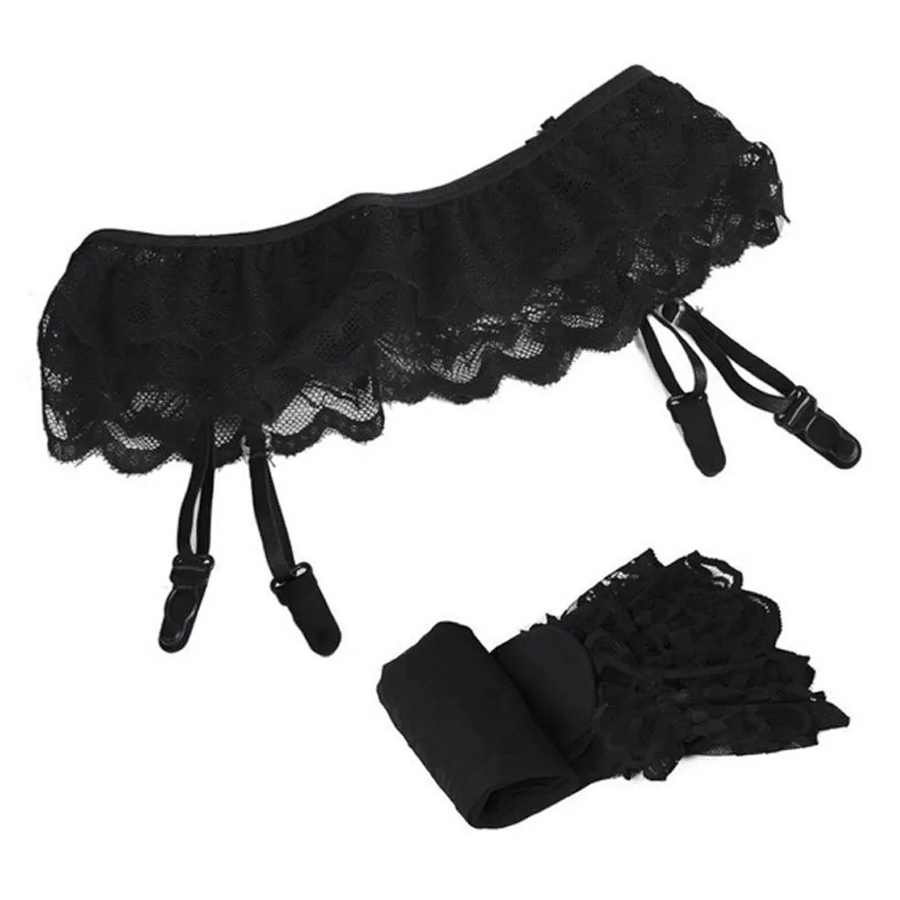 Женские кружевные высокие чулки, носки + Пояс для чулок
