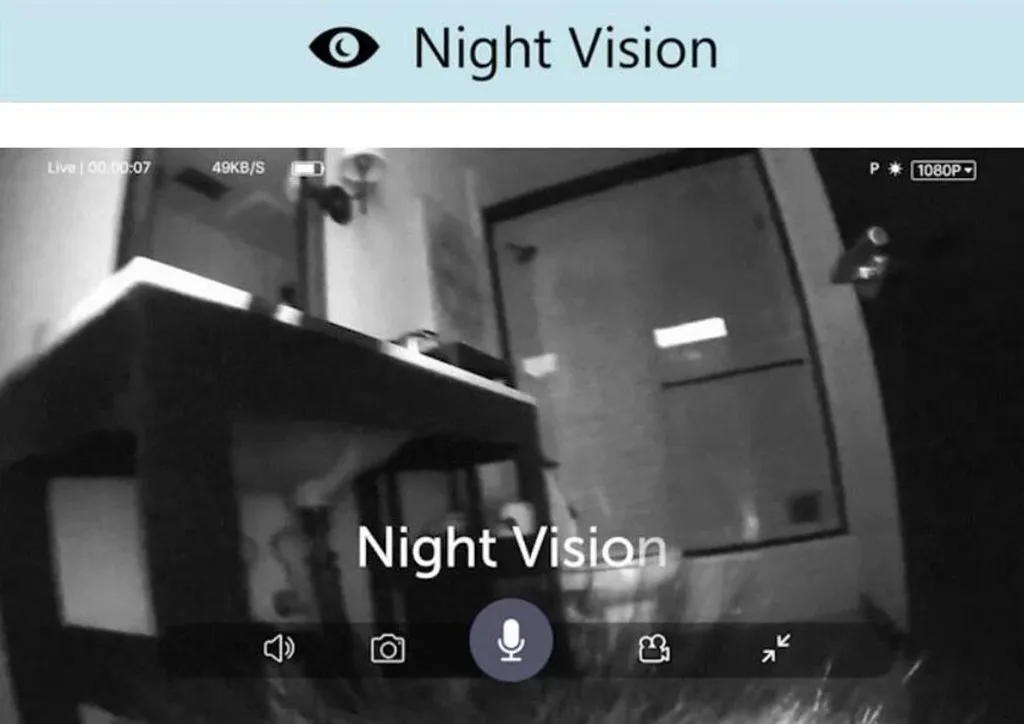 Встроенный режим ночного видения позволяет видеть в темноте. Аварийные ситуации, такие как внезапное отключение электроэнергии, не повлияют на вашу способность обеспечить безопасность вашей собаки ночью, потому что она имеет бортовую батарею.
