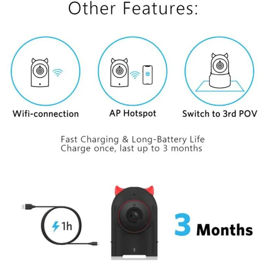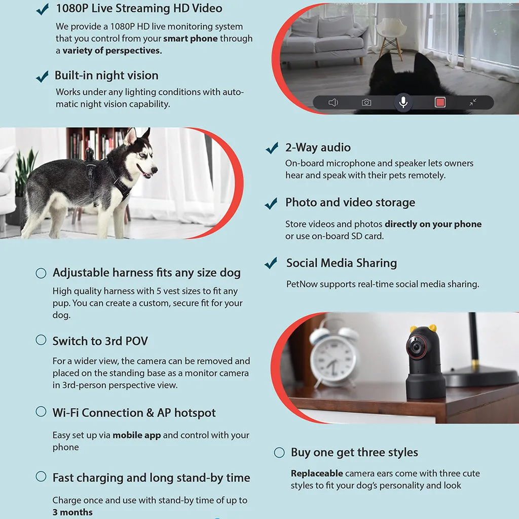 Отслеживание своего питомца может быть трудно с энергичными собаками. Через минуту они могут быть вне поля зрения и вне голосового диапазона. Очень важно иметь возможность контролировать их. Мы предоставляем систему мониторинга 1080P HD live, которую Вы управляете со своего смартфона. Переключитесь с 1-го POV на 3-е POV, просто снимая камеру и размещая ее на базе, чтобы следить за большой областью.