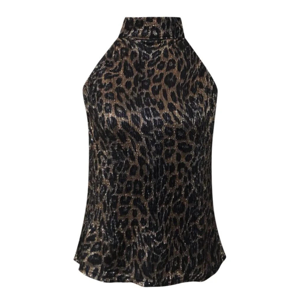 Женская Летняя Повседневная Туника без рукавов с леопардовым принтом